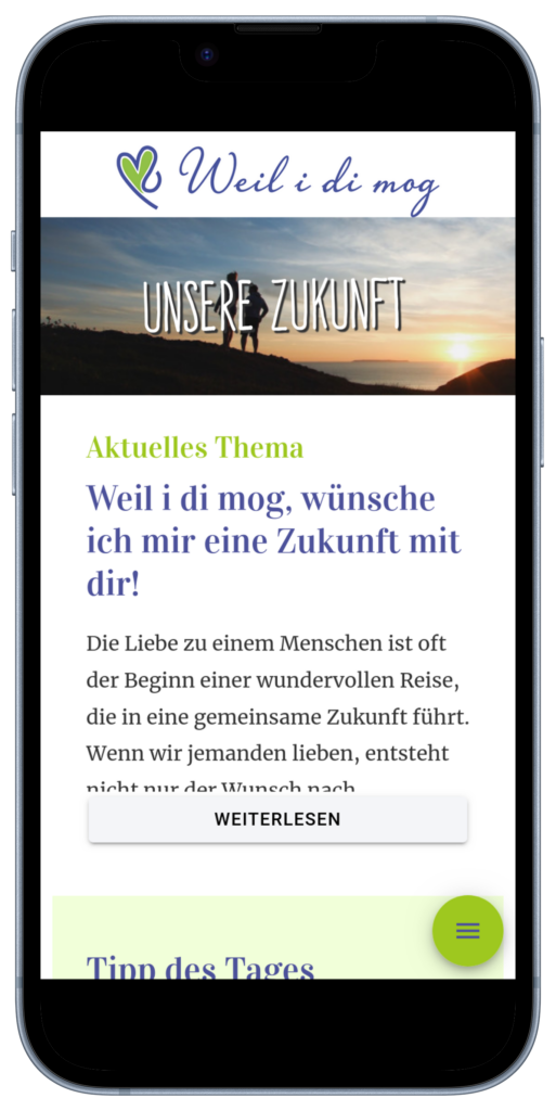 Mit dieser App gebe ich praktische, konkrete Anregungen zur Pflege einer Liebesbeziehung. Jeweils zu Wochenbeginn stelle ich ein neues Beziehungsthema („Thema der Woche“) ein. 4 – mal pro Woche gebe ich wertvolle Tipps zur Beziehungspflege. Das Paargespräch – zu dem ich euch einlade – bildet den Kern dieser App. Ich wünsche euch eine wertvolle und kostbare Zeit zu zweit. www.weilidimog.de